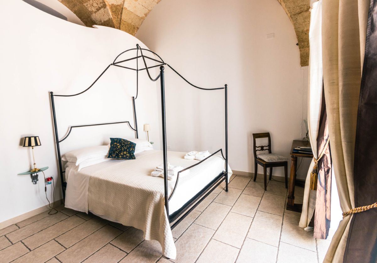 La Camera King Deluxe Messapia fa parte del B&B “Le Antiche Stanze” e si affaccia sulla corte salentina interna a cielo aperto.